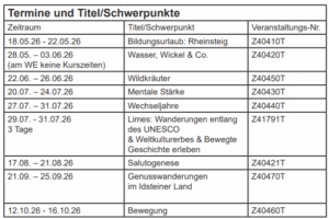 Der Kneipp-Verein Bad Schwalbach / Rheingau-Taunus e. V. freut sich schon auf die nächsten Bildungsurlaube in 2026 mit neuen Themen rund um Gesundheit, Bewegung und Naturverbundenheit: