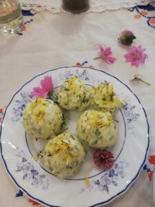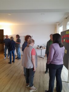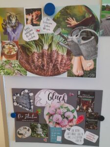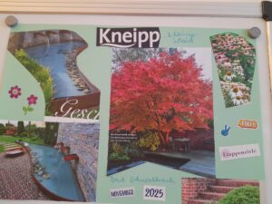 Unter der Leitung von Christine Ott, Sabrina Gruszka und Andreas Ott erlebten die Teilnehmenden ein abwechslungsreiches Programm, das Theorie und Praxis, Natur und Achtsamkeit miteinander verband. Nach einer Einführung in die Kneipp-Lehre und die Geschichte der Bad Schwalbacher Heilquellen standen Bewegung, Atem und Entspannung im Mittelpunkt sowie das bewusste Wahrnehmen der Natur. Besonders beliebt war die Waldbaden-Einheit, die half, innere Ruhe zu finden und sich mit der Natur zu verbinden. Auch das Sammeln und Verarbeiten von Wildkräutern sowie das gemeinsame Kochen mit regionalen und saisonalen Zutaten stießen auf großes Interesse. Dabei wurde deutlich, wie genussvoll und einfach gesunde Ernährung im Alltag sein kann. Sehr geschätzt wurden auch die Kneipp-Güsse, die für viele Teilnehmende eine ganz neue Erfahrung darstellten. Die belebende Wirkung des Wassers beeindruckte alle so sehr, dass viele sich vornahmen, diese einfache und wirkungsvolle Methode künftig regelmäßig in ihren Alltag zu integrieren. Ein weiterer Programmpunkt war die Yogaeinheit, bei der Atmung, Bewegung und Entspannung harmonisch ineinanderflossen. Diese sanfte Kombination half den Teilnehmenden, Stress abzubauen und das Körperbewusstsein zu stärken. Zum Abschluss setzten sich alle kreativ mit ihren Erfahrungen auseinander: Jeder erstellte eine persönliche Collage, die das Erlebte und die eigenen Erkenntnisse sichtbar machte. Die Woche war geprägt von einer tollen Gruppendynamik – es wurde gemeinsam gelacht, reflektiert, gekocht und sich bewegt.