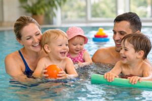 Die Teilnahme erfolgt jeweils gemeinsam mit einem Elternteil im Wasser.